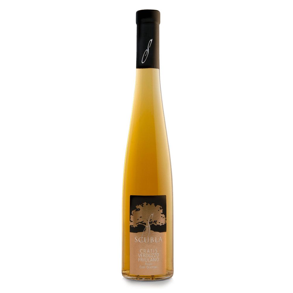 “Cratis” in latino significa graticcio. Proprio l’estremizzazione dell’appassimento dell’uva Verduzzo (un’uva bianca tra le più tanniche) sotto la tettoia dell’azienda, rivolta a nord-est, dove arriva il vento di Bora, freddo e secco, consente in meno di tre mesi, di essiccare e concentrare gli zuccheri presenti in quest’uva. La resa è ridotta a soli 18 litri per quintale di uva originaria.